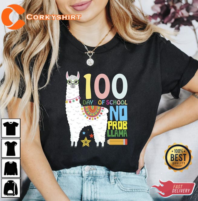 100 Day School Students Llama No Probllama Shirt