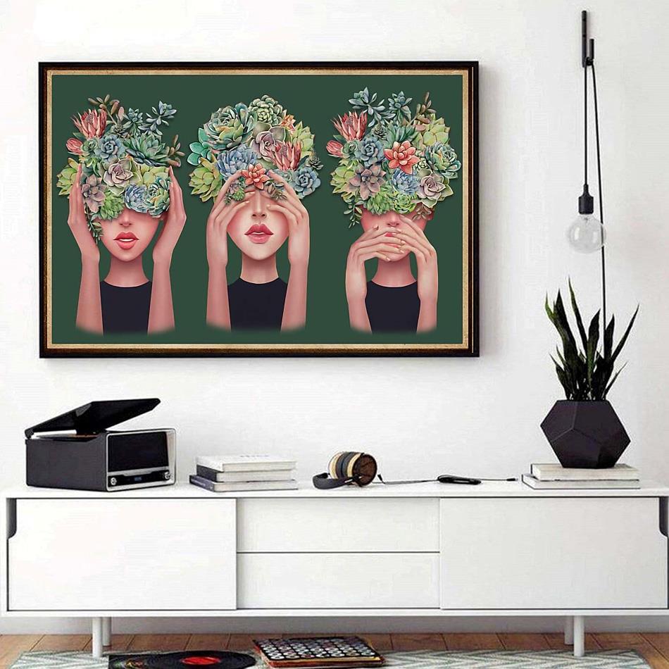 Succulent Girl No Evil Horizontal Canvas