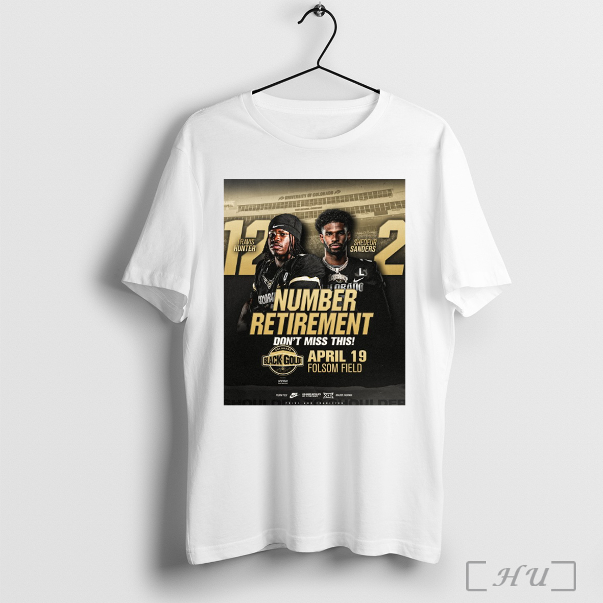 Trending Colorado Buffaloes Travis Hunter And Shedeur Sanders Number Retirement Dont Miss This Black Gold Day 4 19 2025 Folsom Field Poster T Shirt Sweatshirt