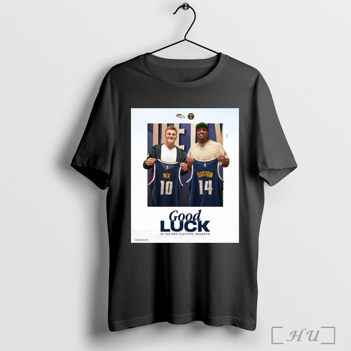 Trending Denver Broncos Bo Nix And Courtland Sutton Good Luck In The Nba Playoffs Nuggets Poster T Shirt Sweatshirt
