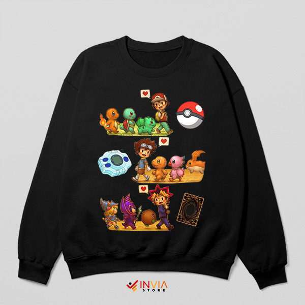 Unite Digimon Pokemon And Yu-gi-oh Black Sweatshirt