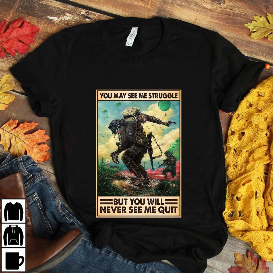 Veteran You May See Me Struggle But You Will Never See Me Quit Poster Canvas Unisex T-shirt