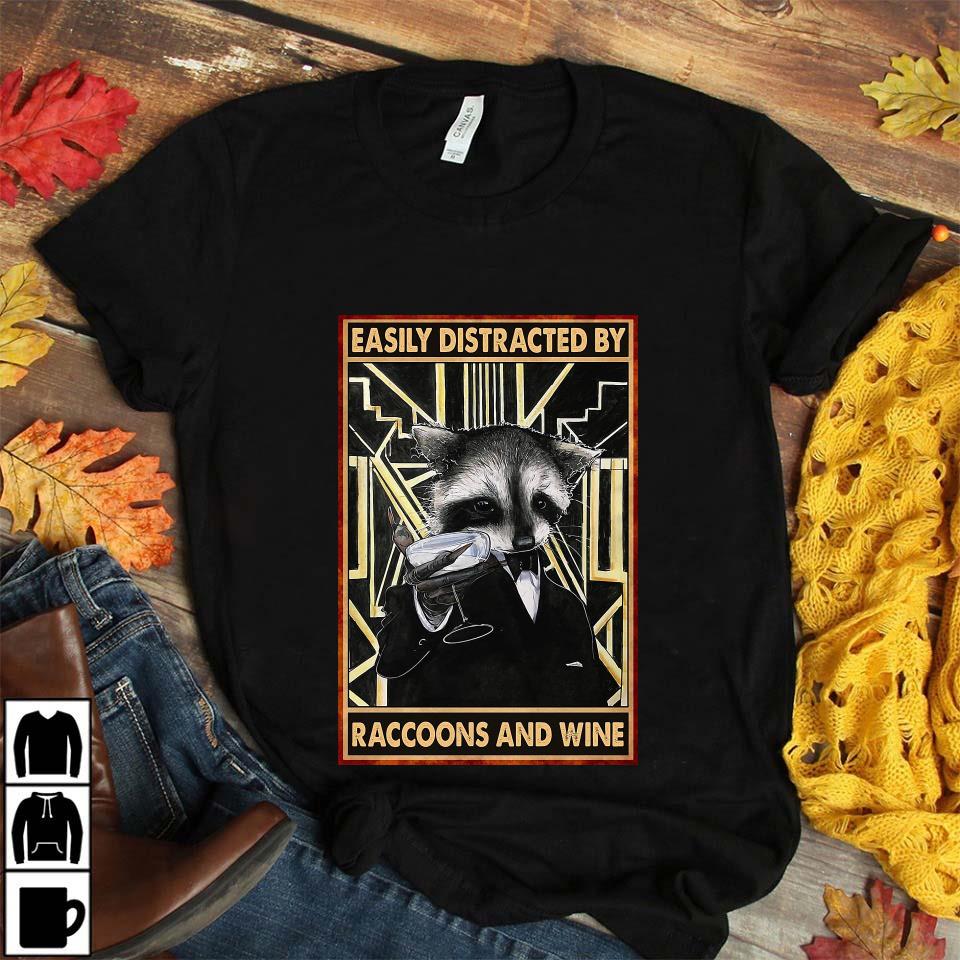 Vintage Easily Distracted By Raccoons And Wine Wall Art Unisex T-shirt