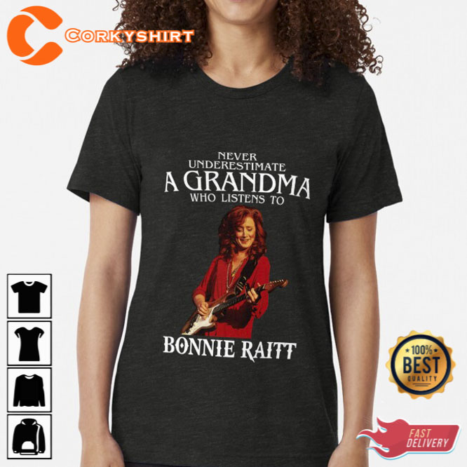 Vintage Never Underestimate A Woman Who Listens To Bonnie Raitt T-shirt