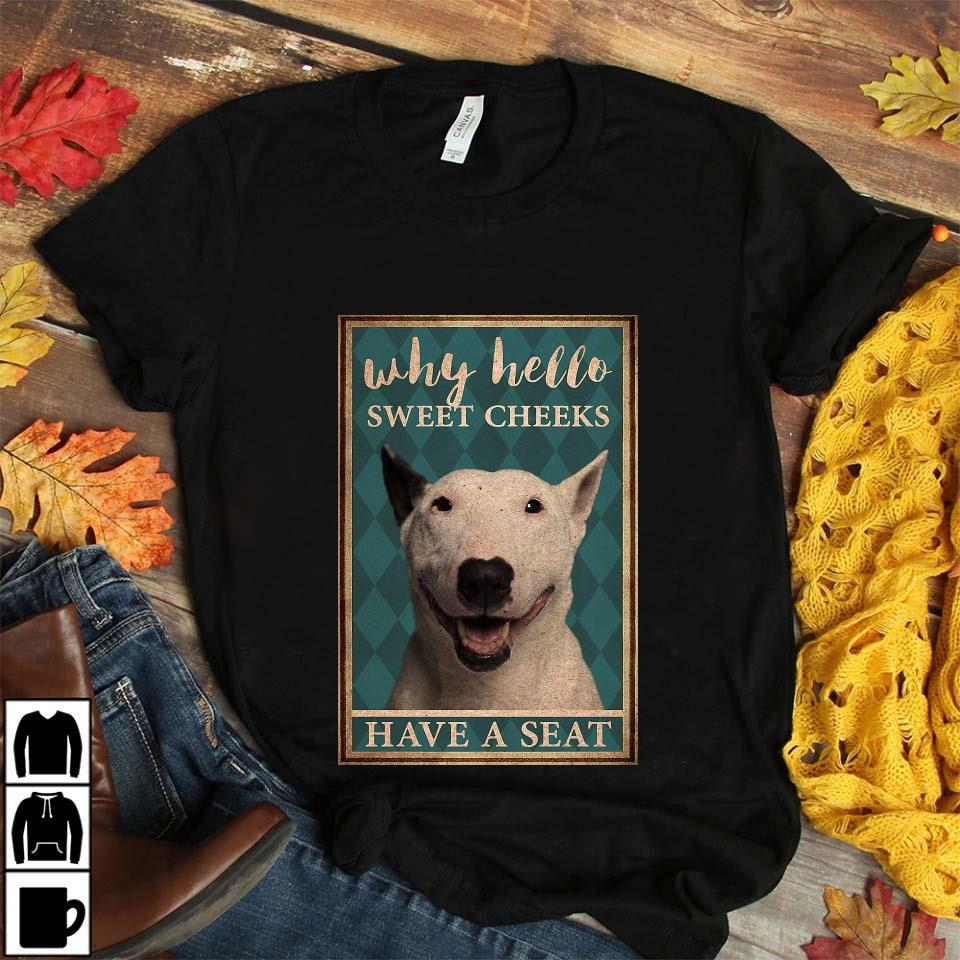 Bull Terrier Why Hello Sweet Cheeks Have A Seat Vertical Canvas Unisex T-shirt