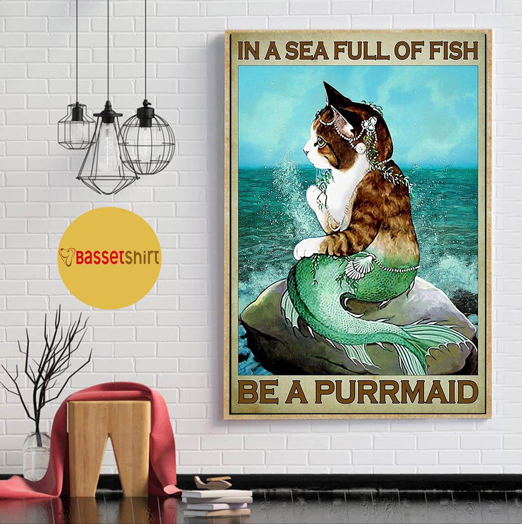 Cat Mermaid In A Sea Full Of Fish Be A Purrmaid Poster Canvas