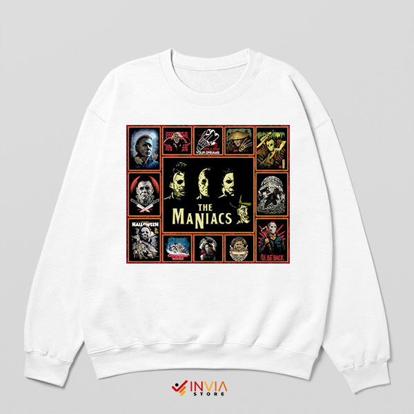 Character Lineup The Maniacs Horror Film White Sweatshirt