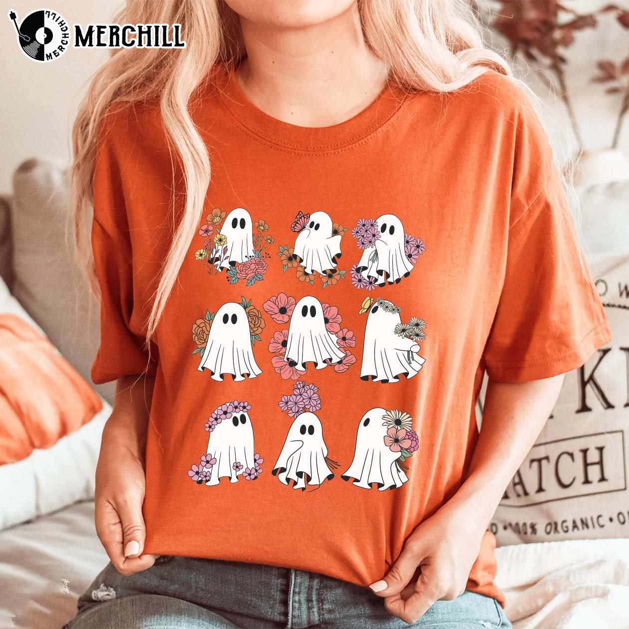 Cute Floral Ghost Halloween Graphic T Shirt