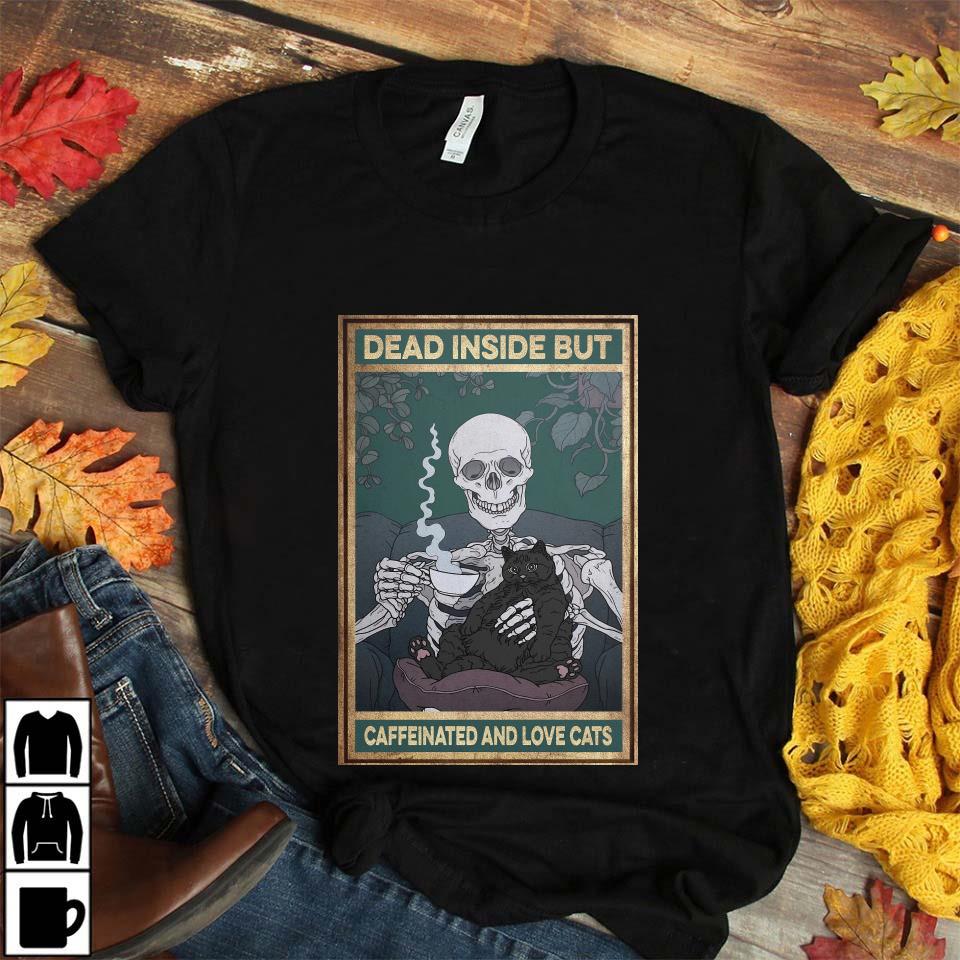Dead Inside But Caffeinated And Love Cats Poster Canvas Unisex T-shirt
