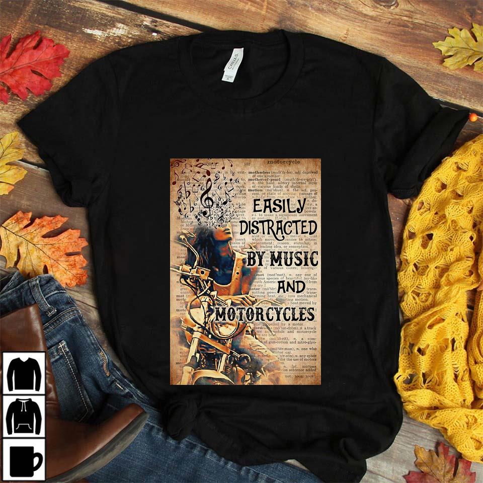 Easily Distracted By Music And Motorcycles Bike Girl Poster Unisex T-shirt