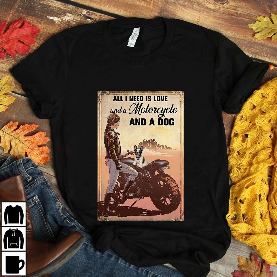 All I Need Is Love Motorcycle And A Dog Poster Canvas Unisex T-shirt
