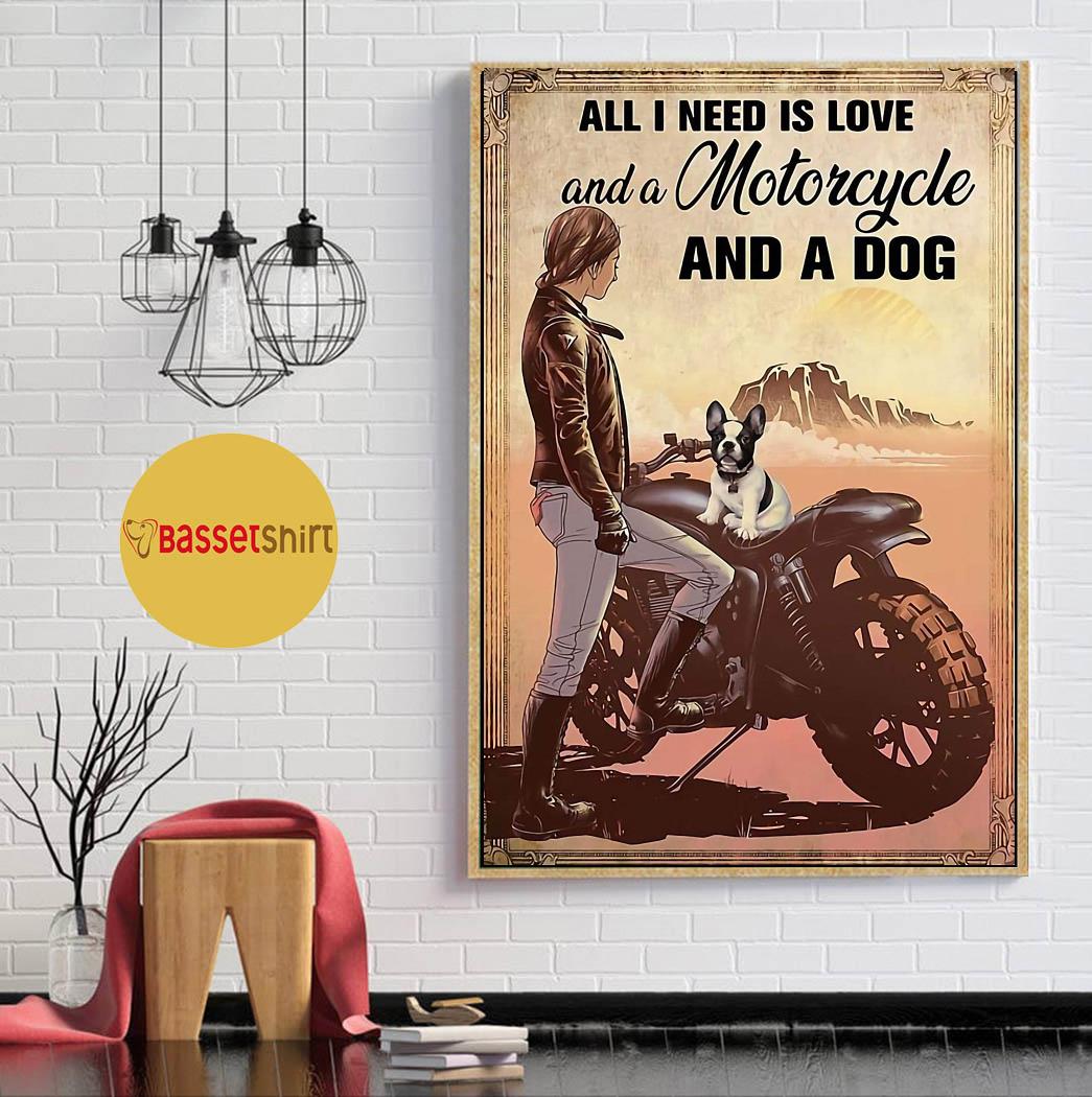 All I Need Is Love Motorcycle And A Dog Poster Canvas