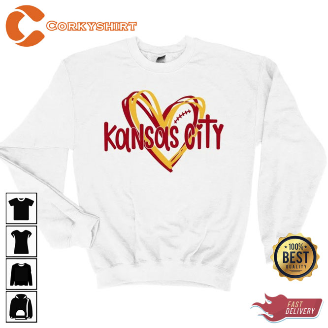 Football Heart Kansas City Chiefs Tee Shirt