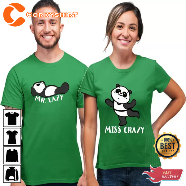 Funny Couple Panda Mr Lazy Miss Crazy Printed Unisex T-shirt
