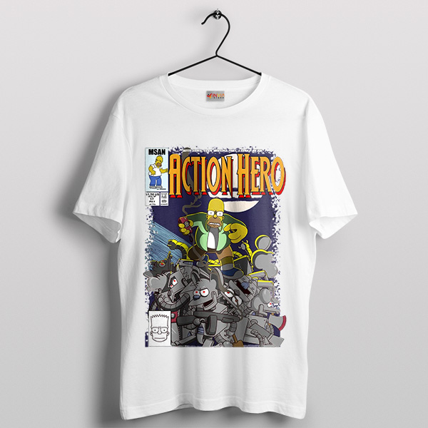 Funny Homer Comic Action Hero White T-shirt