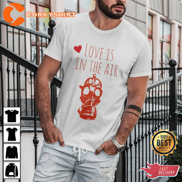 Funny Love Is In The Air Gas Mask Anti Valentine Quote Unisex T-shirt