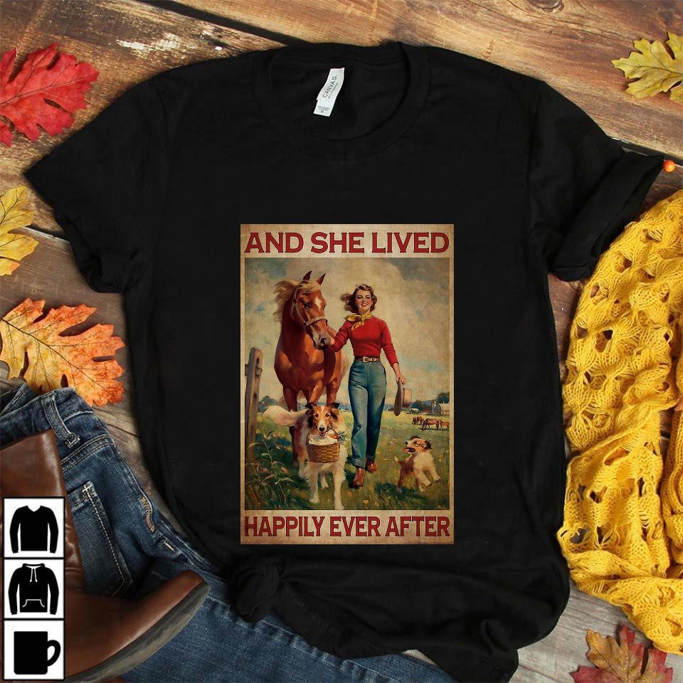 Horse Dog And She Lived Happily Ever After Vertical Canvas Unisex T-shirt