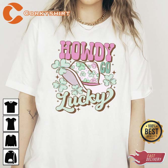 Howdy Go Lucky Shirt Funny St Patricks Western Smiley Cowboy