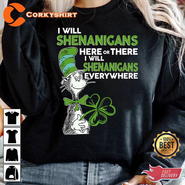 I Will Shenanigans Here Or There Teacher Cat In Hat T-shirt