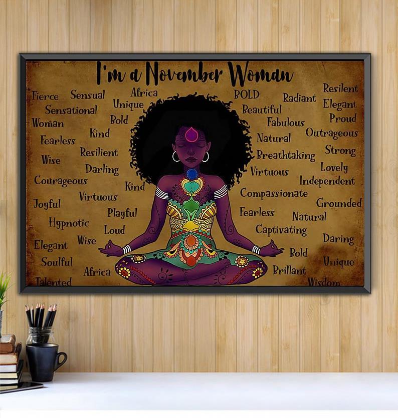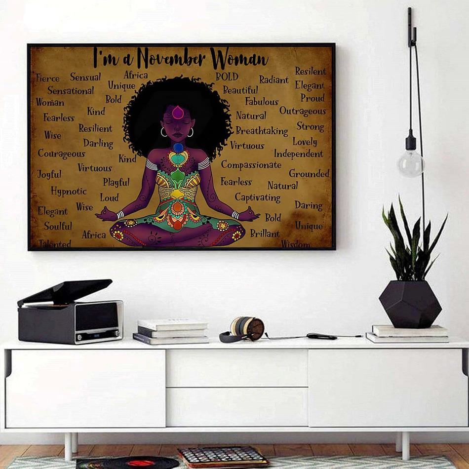 I’m November Woman Funny Yoga Hippie Lotus Buddha Horizontal Canvas Black Canvas